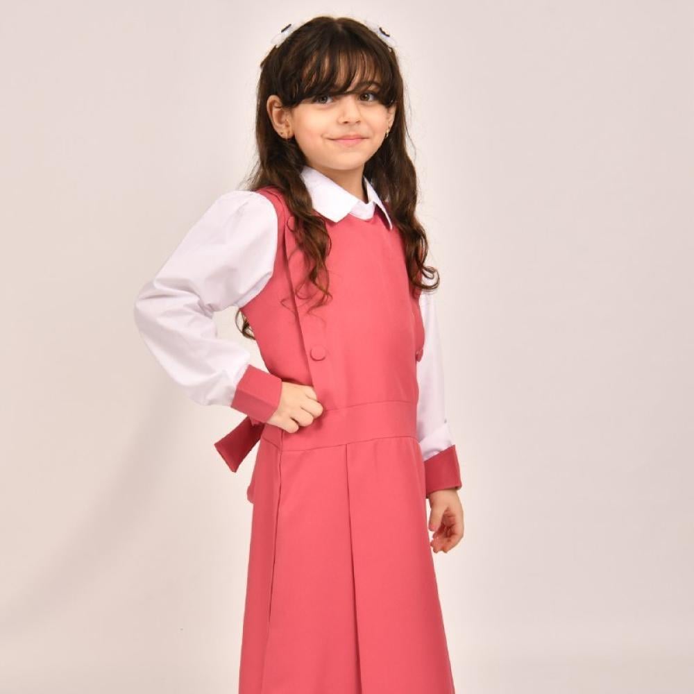مريول بناتي للمرحلة الإبتدائية باللون الزهري
