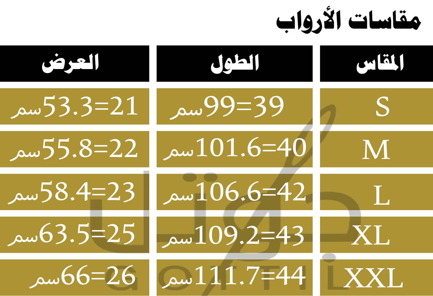 يمكنك اختيار المقاس المناسب من الجدول أدناه